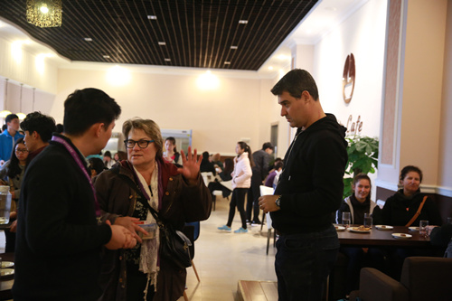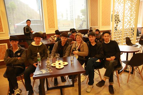 当大家围坐在开业不久的咖啡厅后,环球雅思的老师Tom先跟同学们聊起了他的留学生涯。大家一边品尝着美味的咖啡和Sharon特地从澳大利亚带来的糕点,一边饶有兴趣地听着精彩有趣的演讲内容。现场互动环节笑声不断,很快气氛就热络起来。Rocco趁机开始游戏“头还是屁股”,虽然第一次玩这个特别的游戏,大家积极参与不亦乐乎,最开心的是还能抢到不少奖品。