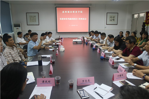 活动组一行对应用外语系、信息技术系、视觉艺术党支部办公场所和党员活动场所以及部分实训场所进行了现场查看,并听取系部负责人、系党支部书记有关系部办公条件、实训场馆、系部文化建设等方面的情况汇报。针对服装系实训室门改造装饰问题,邓庆宁同志进行了现场办公,要求服装系主任王洁芯加强实训室外显专业文化的设计。随后,在艺术设计系二楼会议室召开了党建和党风廉政建设工作座谈会。