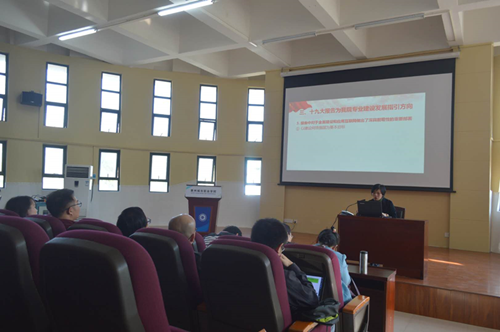 (信息学院)1月3日下午,信息学院在西校区报告厅召开全体教师大会,开展“二级学院院长宣讲十九大”活动。信息学院院长杜珺同志在会上作了主题报告,信息学院除有上课、公务的教师之外,其他教师都参加了党课学习。
