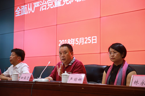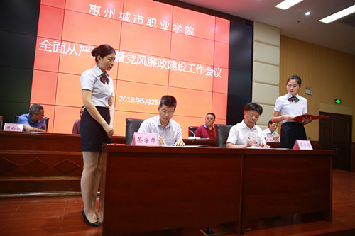 (宣传部记者 靳雨丹) 5月25日下午,为全面贯彻落实党的十九大和习近平总书记参加十三届全国人大一次会议广东代表团审议并发表重要讲话精神,传达学习贯彻十九届中央纪委二次全会、十二届省纪委二次全会、十一届市纪委三次全会精神,38365365.net召开2018年全面从严治党暨党风廉政建设工作会议。全体校领导、党委委员、副校级干部、全体中层干部及全校在职在岗党员共同参加。会议由田儒清副书记主持。
