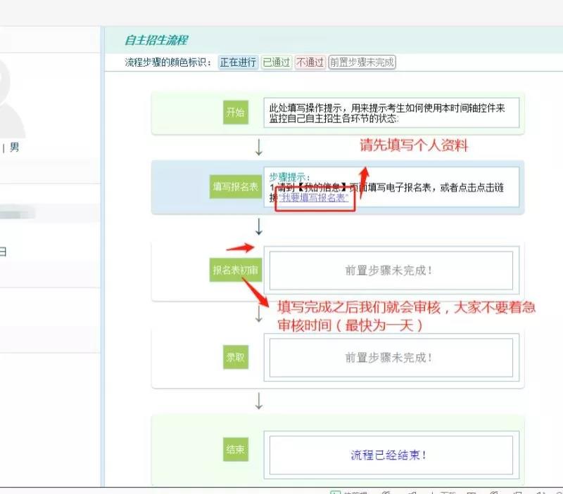今年我校的报名流程为:网上预报名→招生办审核→审核通过后准备报名资料→现场刷卡缴费