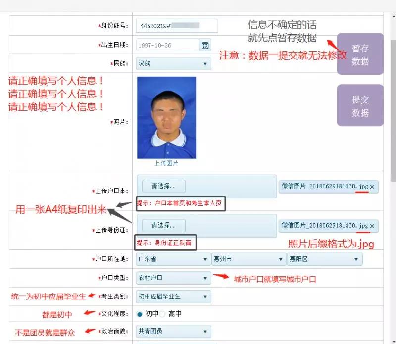 1.准考证跟成绩一定不能填错,否则审核通不过;