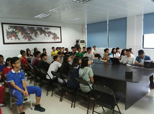 卢导介绍了惠州今视传媒有限公司的发展历程,播放了由公司拍摄的音乐MV、微电影、宣传片等作品。他耐心地为学生讲解影视制作前期工作的相关专业知识,让同学们对影视制作流程有了初步了解。随后系里播放了由影视专业学生团队拍摄的微电影作品《青春》,影片的清新风格和独特角度得到卢导的大加赞赏。在互动问答的过程中,卢导也鼓励学生勇于创作,不断进步。他表示今后期待与我校共同合作,支持并欢迎学生到公司参观学习,建立校企对接的办学模式。