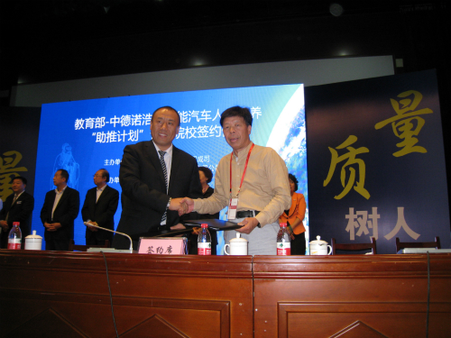 教育部—中德诺浩高技能汽车人才培养“助推计划”校企合作项目落户我院汽车工程系,将有力地推动我院汽车专业的内涵建设,为培养符合国际标准的高技能汽车人才提供了可操作的整体解决方案,并给我院研究德国“双元制”职业教育模式的本土化提供了生动具体的学习蓝本。
